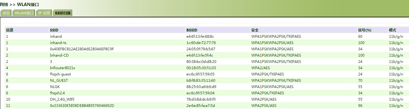 2.确认信道的选择,进入SSID扫描状态栏查看,这里无线AP是2信道,所以,上图的配置选择的是信道2