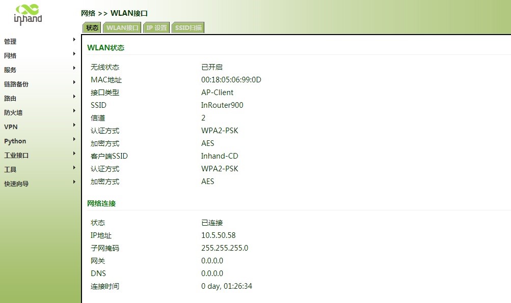 3.查看IR900从无线AP获取的WLAN地址,如下图: