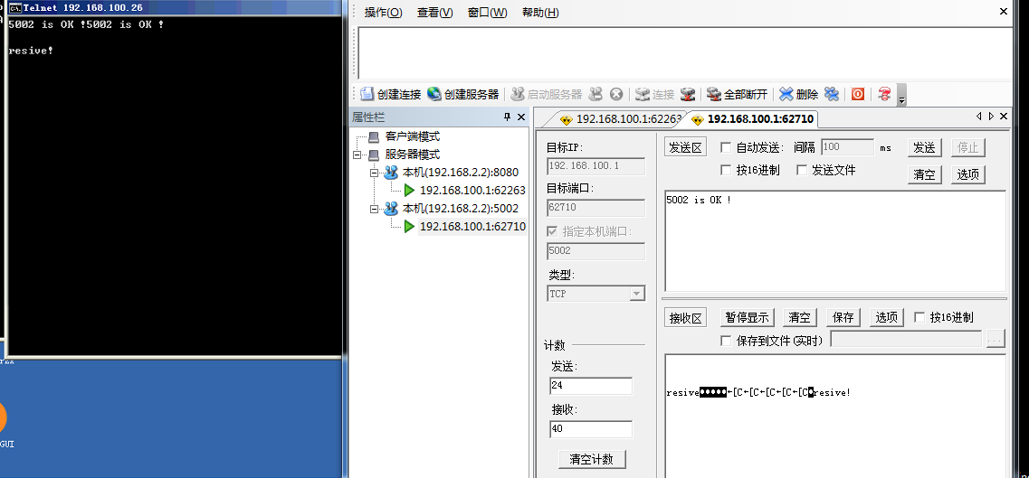 4.下端设备192.168.2.2 建立TCP Server 8080&5002