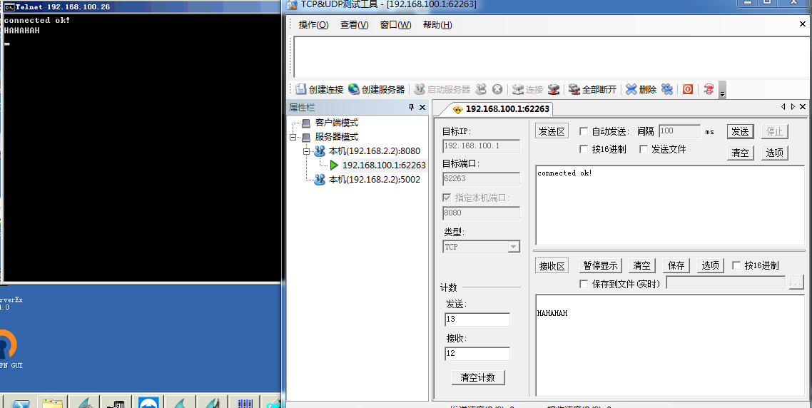 OpenVPN Server访问Client OpenVPN_T_1 接口IP 192.168.100.26:5002(图片后面的CMD命令框)