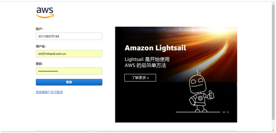 输入注册号的AWS账号密码并登录