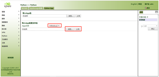 第一步:访问http://192.168.2.1/pysdk.jsp(网关地址加/pysdk.jsp),选中相应的python SDK并上传。