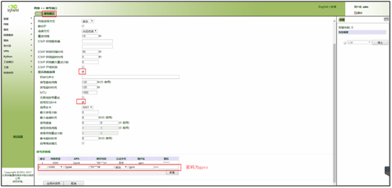 点击“网络>>拨号接口”,进入拨号接口参数配置界面,选择“启用”。