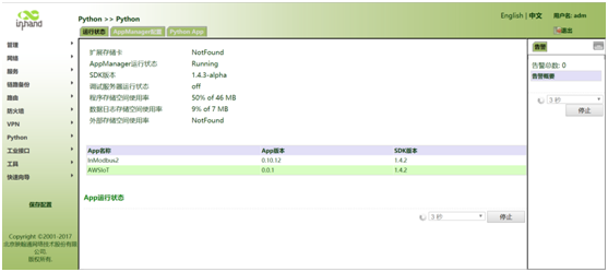 在python--pythonApp页面导入AWSIoT和InModbus2 app。