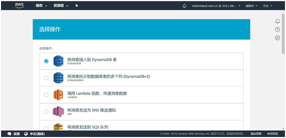 - 固定) desc: 手动告警 # IO寄存器描述(配合平台显示)4.6.4 写IO寄存器策略组支持平台和SMS对IO寄存器进行写操作,需在对应 - id: 添加如下格式的字段:writeable: # 添加写功能 address: Demo.40010 # 写地址(控制Id+寄存器地址) expression: float($var) # 写前转换公式($var固定)4.6.5 实时告警策略组支持IO的实时告警,需在对应 - id: 添加如下格式的字段:warnings: # 添加告警功能 - expression: values['Demo.40010']/10 > 30.0 # 告警触发条件 code: 101 # 错误代码 level: 2 # 等级(报警等级,1-提醒,2-警告,3-次要警告,4-重要警告,5-严重警告) desc: The temperature is above the setting(>30.0) # 告警描述 duration: 0 # 死区持续时间(可删字段) interval: 0 # 间隔(可删字段) - expression: values['Demo.40010']/10 <10.0 code: 102 level: 2 desc: The temperature is below the setting (<10.0)4.7 导入配置文件并重启APP编辑好配置文件后需要将配置文件导入相应APP并重启APP。进入python--Python APP页面中选择需要导入配置文件的APP后点击浏览选择对应配置文件并导入即可。第一步:导入配置文件 第二步:重启APP进入python--运行状态页面,点击App运行状态进入supervisor页面 点击重启APP,APP重启后对应pid值会变化。 4.8 查看日志当InModbus2出现如下日志说明下端控制器数据已经发送至AWSIoTapp。 当AWSIoT出现如下日志说明数据已经发送至AWS平台。 当AWSIoTapp出现如下日志请检查在AWS平台上操作是否正确或重启AWSIoTAPP。 五、订阅主题 在AWS平台测试页面输入配置文件中serie_topic填写的主题并订阅主题 点击订阅后可以在左侧看到已订阅主题,同时在下方能看到已上传的数据。至此就完成了通过InModbus2协议将下端控制器数据上传至AWS平台的操作了。六、数据存储至Dynamodb数据库根据https://docs.aws.amazon.com/zh_cn/iot/latest/developerguide/iot-create-role.html中的规则栏设置权限及角色。设置完成后进入Dynamodb数据库 点击创建表 自定义表名称,主键为必填项。如需便于增加数据筛选条件可勾选添加排序键,类型选择字符串,随后点击创建。(建议类型使用字符串类型) 在行动中新建规则 填写规则名称,属性填‘*’,主题筛选条件填入需要获取哪个主题的数据。 点击添加操作,选择将消息插入到DynamoDB表并点击配置操作。 选择已创建的表名称,填入哈希键值 选择创建好的aws_iot_dynamoDB角色并点击添加操作,随后点击创建规则即可。 九、FAQ 编辑配置文件时请注意不同设备的mq_client_id和serie_topic均不要重复。 发现日志异常或平台上未能查看到数据请检查操作步骤是否有误或者重启AWSIoTAPP。 使用时需要关闭管理--设备远程监控平台中的设备远程监控平台功能。 AWS使用限制请查看此链接:https://docs.aws.amazon.com/zh_cn/general/latest/gr/aws_service_limits.html#limits_iot 在DynamoDB中创建表时如果表类型选择数字时请勿选择添加排序键