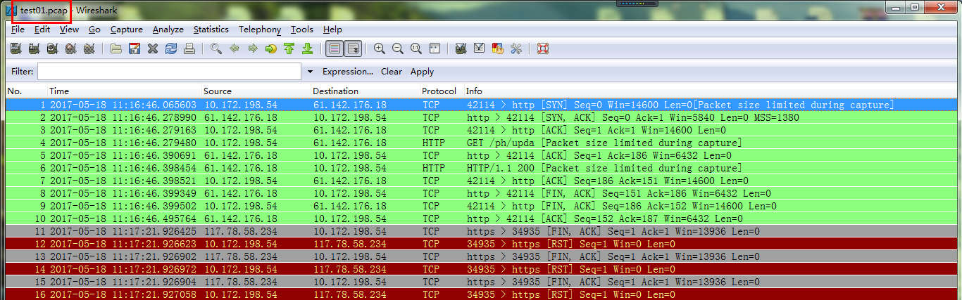 三、使用wireshark软件打开下载的数据包文件并进行分析