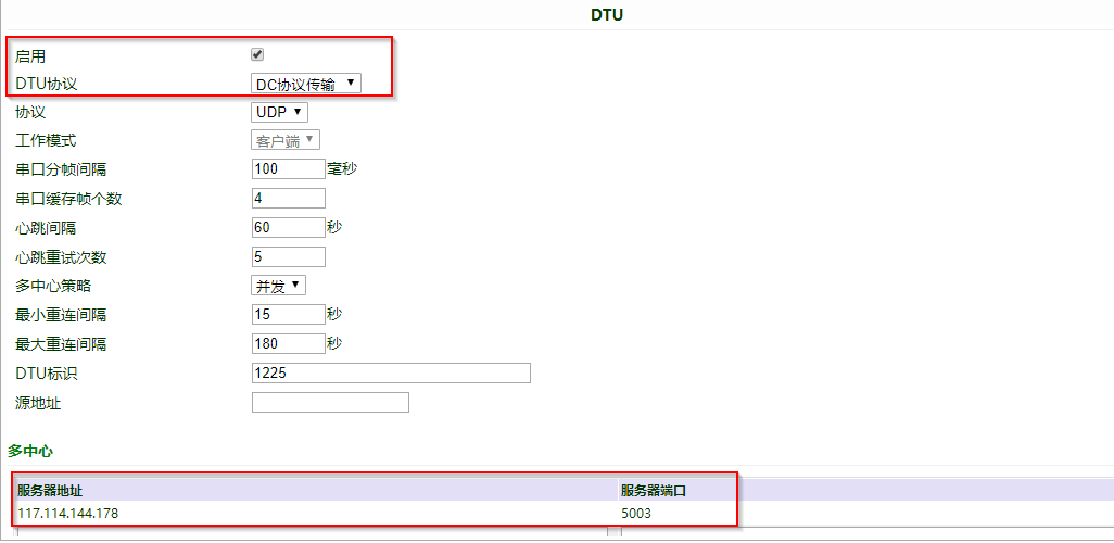 IR615使用DTU功能DCUDP方式连接主站服务器配置 李万龙 这家伙很懒,还没有设置简介 0 人点赞了该文章 · 3917 浏览 前提:确保IR615能够访问公网 1、首先在路由器上打开DTU功能 2、勾选DC协议,输入主站服务器IP和端口及DTU标识 3、连接成功后如下图 4、IR615日志显示如下