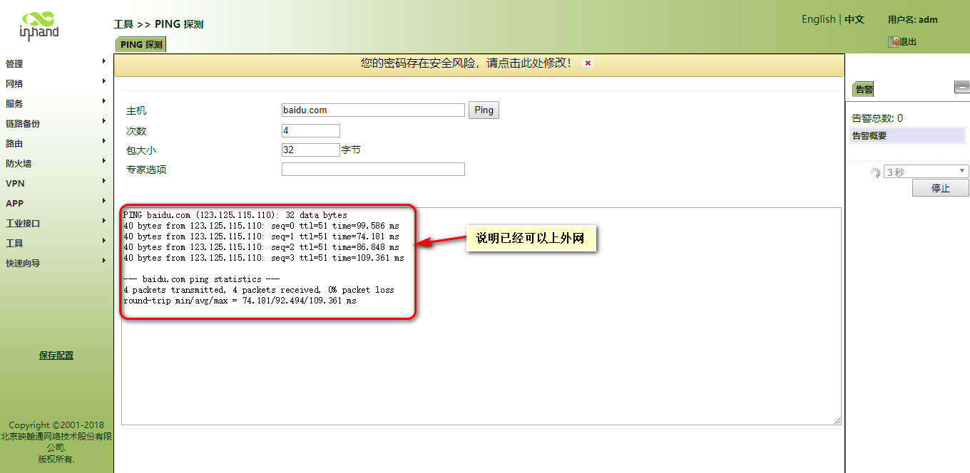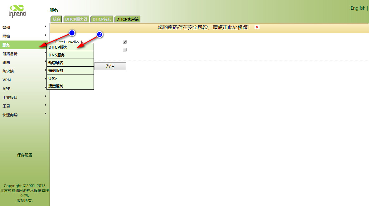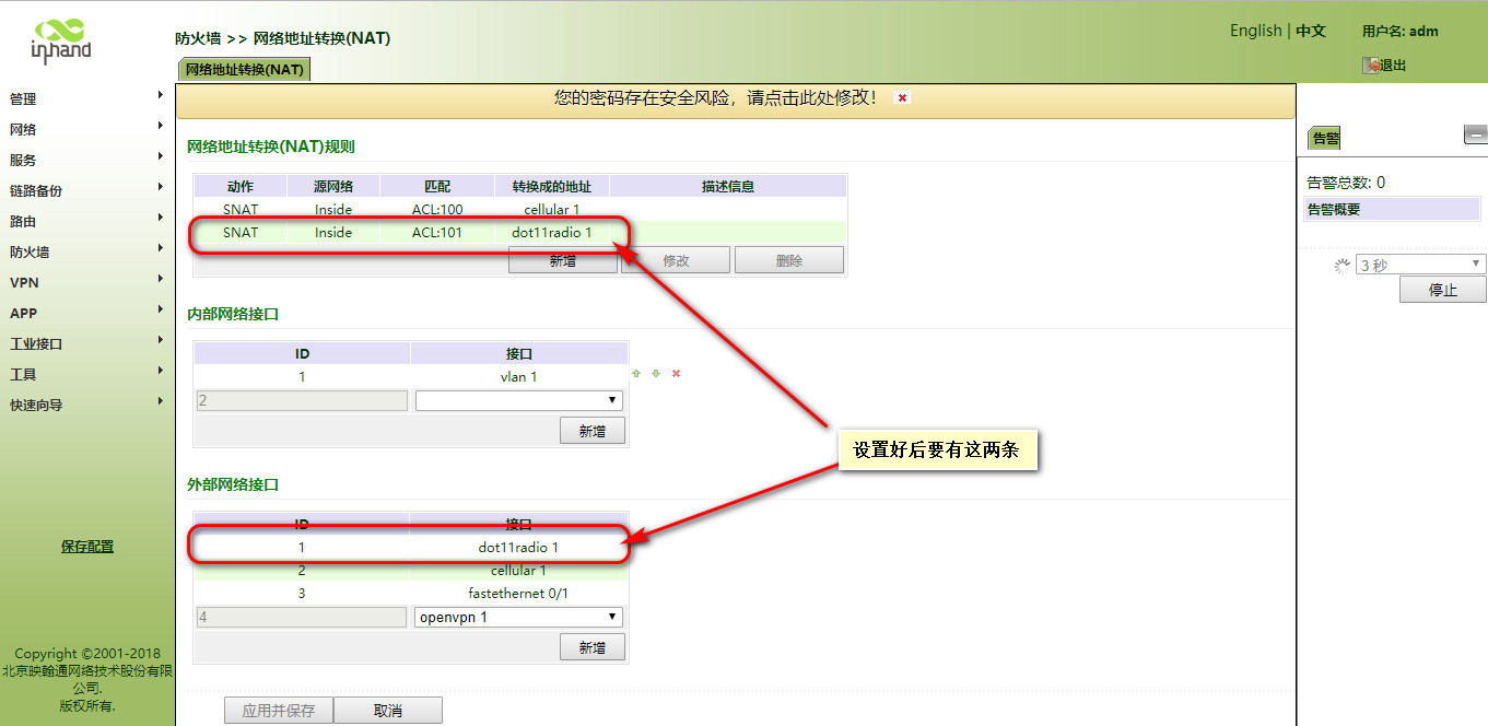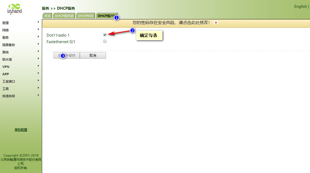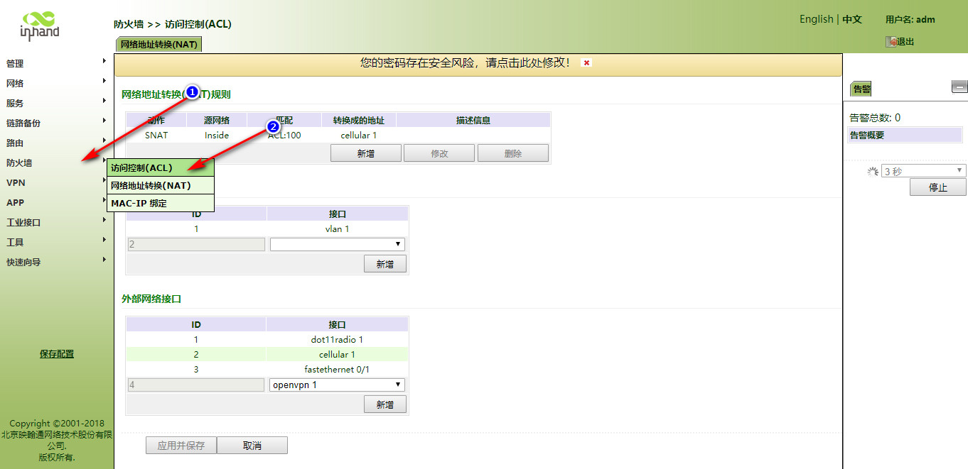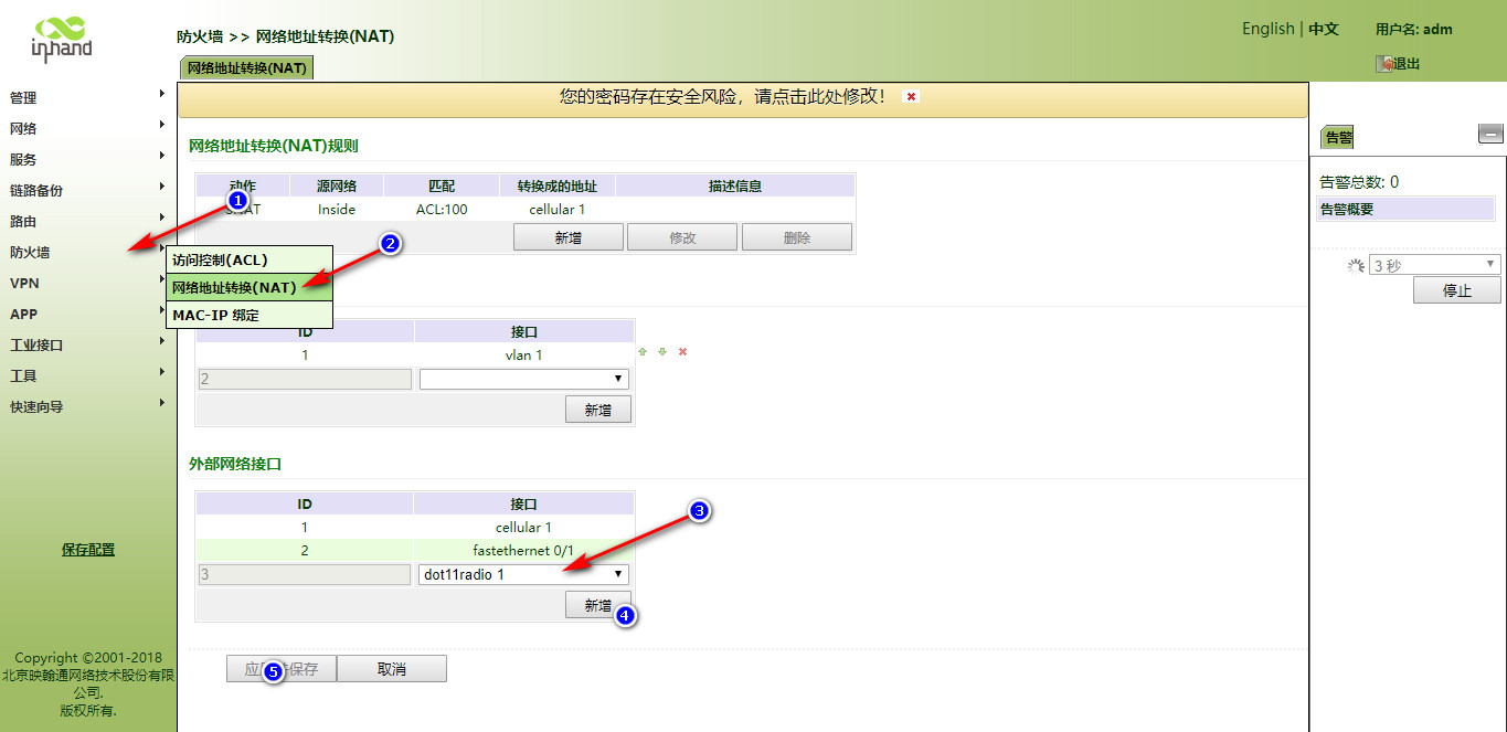 怎样使用IR900连接WiFi上网呢?? 奇兵 这家伙很懒,还没有设置简介 1 人点赞了该文章 · 3175 浏览 1、登录网关。 2、开启网关的DHCP客户端(默认开启)。 3、开启WLAN客户端功能。 4、填写要连接的WIFI信息。 5、查看连接情况 6、写静态路由。 7、设置防火墙 8、WiFi的DHCPserver没有开启的话继续向下执行,如果上边的已经测试可以通,则不需要执行下边的操作。