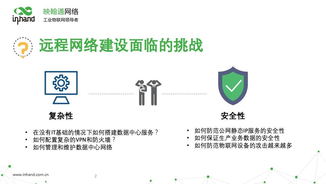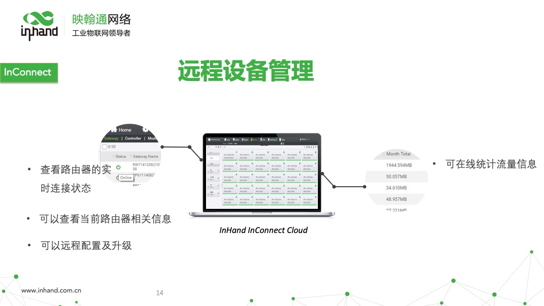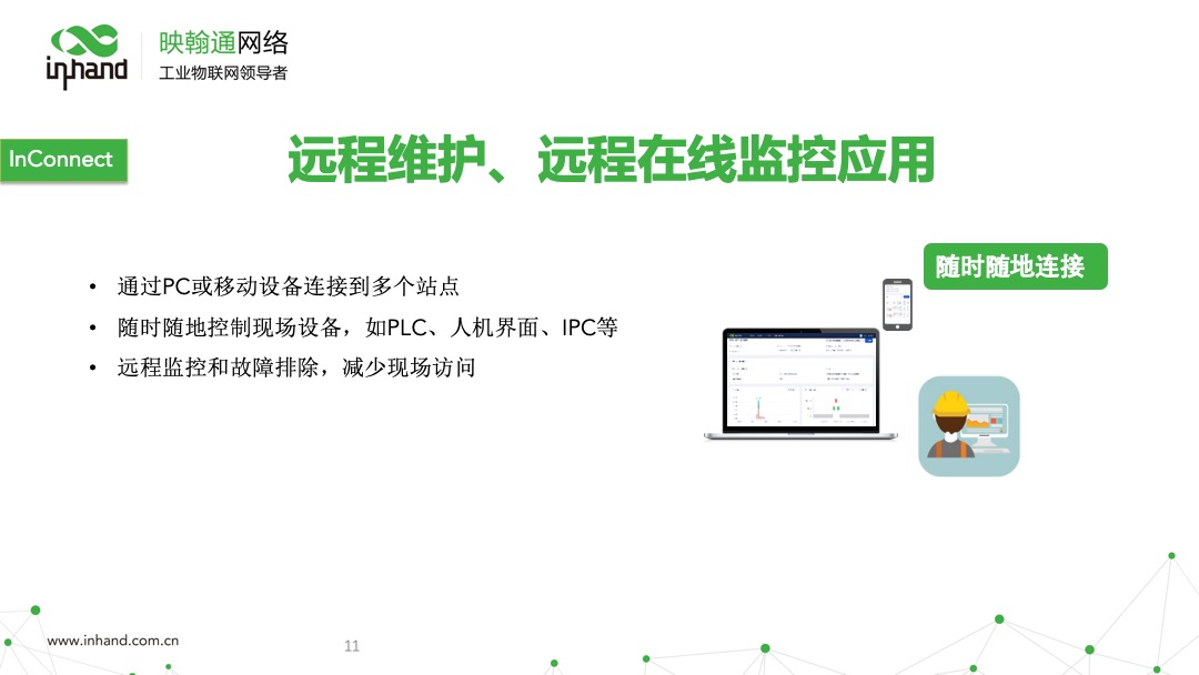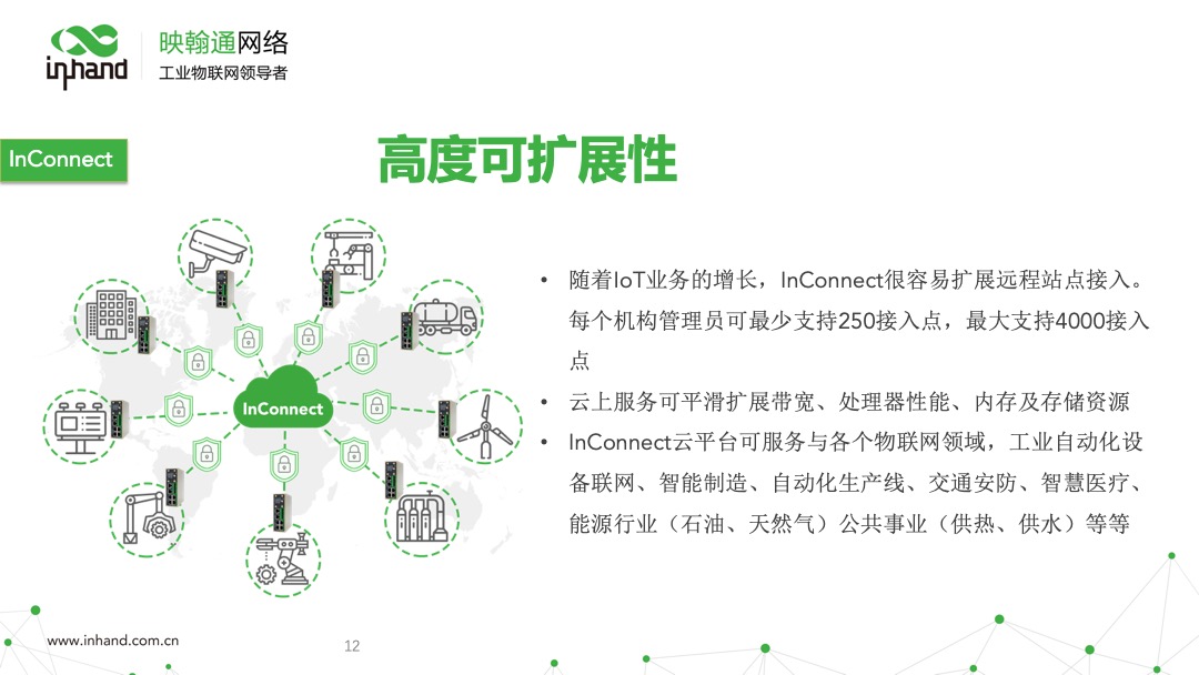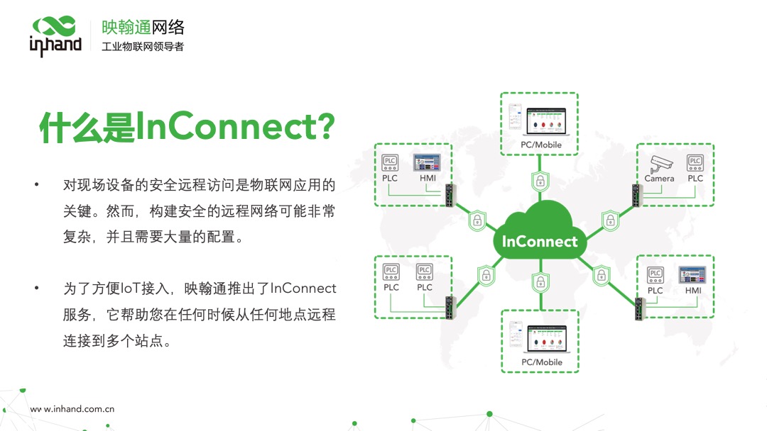 InHand Connect Service是简称 InConnect 可以实现快速异地组建虚拟局域网,该方案基于 SaaS(Software as a Service)服务,具有即插即用,端对端、易扩展、数据加密传输等特点。