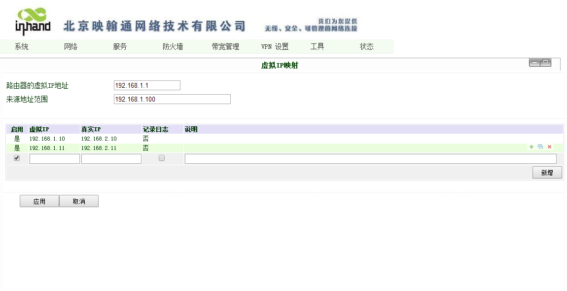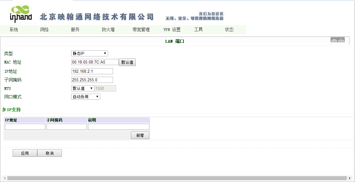 IR615虚拟IP映射,WAN口连接设备采集LAN口设备的数据 管凯 这家伙很懒,还没有设置简介 1 人点赞了该文章 · 3215 浏览 正常根据下端连接设备的的要求更改LAN口IP地址; 根据WAN口所连接的数据采集设备来改写WAN端口的IP地址及多IP地址,网关配置成数据采集设备的IP(数据采集设备不配置网关); 将WAN端口所连接的数据采集设备的IP地址映射成WAN端口的IP,然后将LAN端口下所连接的设备的IP地址映射成WAN端口同一网段的IP; 至此,WAN所端口连接的数据采集设备访问同网段的虚拟IP(即LAN端口下连接的设备映射后的虚拟IP),就是访问LAN端口下的设备。