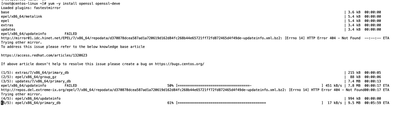 1. 1 通过yum 安装 openssl 和 openssl-devel 模块[root@centos-linux ~]# yum -y install openssl openssl-devel