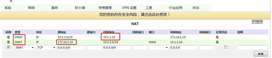 IR615 1:1 NAT映射 Admin 这家伙很懒,还没有设置简介 0 人点赞了该文章 · 3841 浏览 1. 在IR615 WAN端口设置多IP,需要映射多少个IP,就添加多个IP,图中设置的多IP为 2. 做两条NAT映射,一条是SNAT 一条是DNAT DNT 映射中注意添加源IP地址段,SNAT映射注意添加目的地址段。