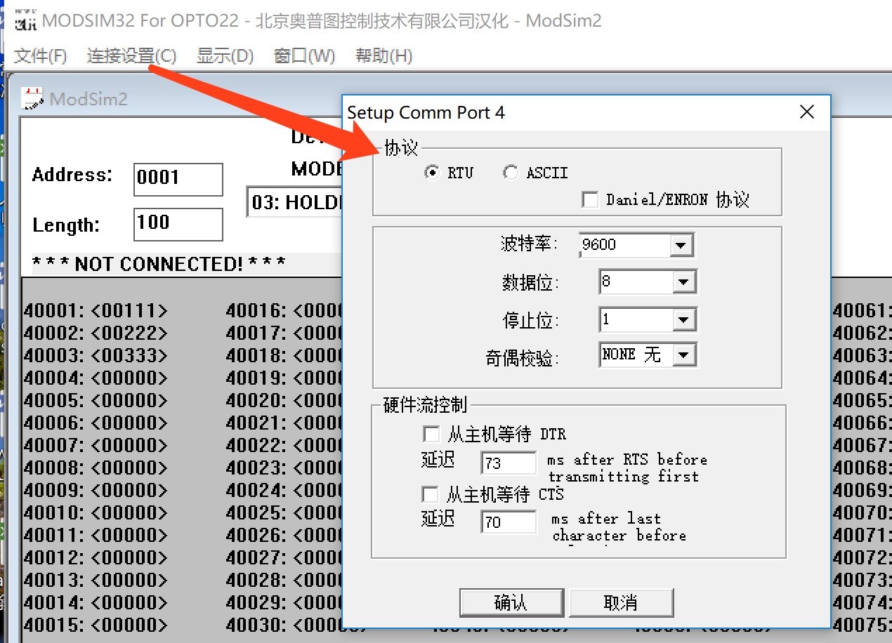 电脑运行modbus slave 程序,模拟modbus客户端设备。串口连接至InDTU串口1业务端口。