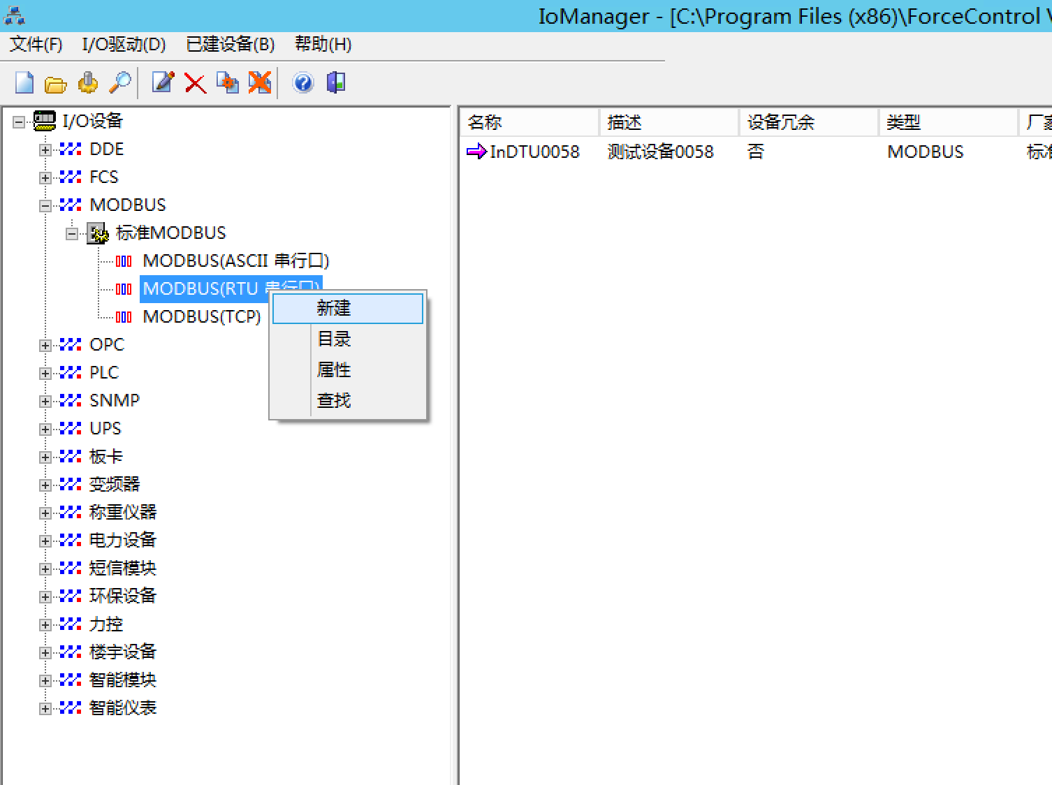 本文主要的内容是InDTU配置位DCTCP的连接方式,连接力控ForceControl V7.2的配置。DTU下端连接Modbus RTU 协议的通讯协议设备,通过4G网络通讯。安装力控的服务器需要具备公网IP地址。
