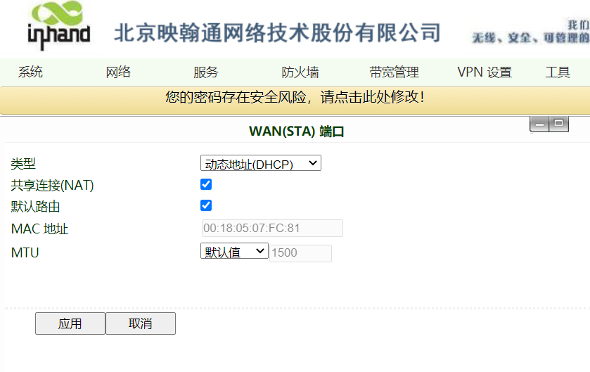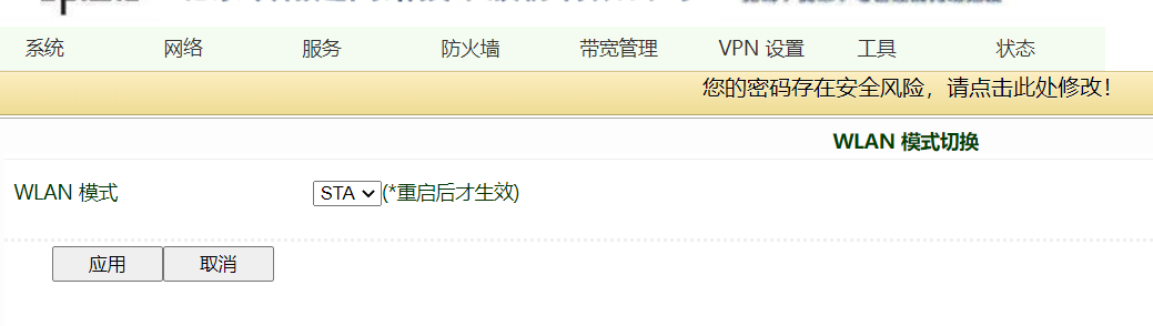 2)重启系统(系统>>重启系统),重启后选择网络》wan(sta)端口