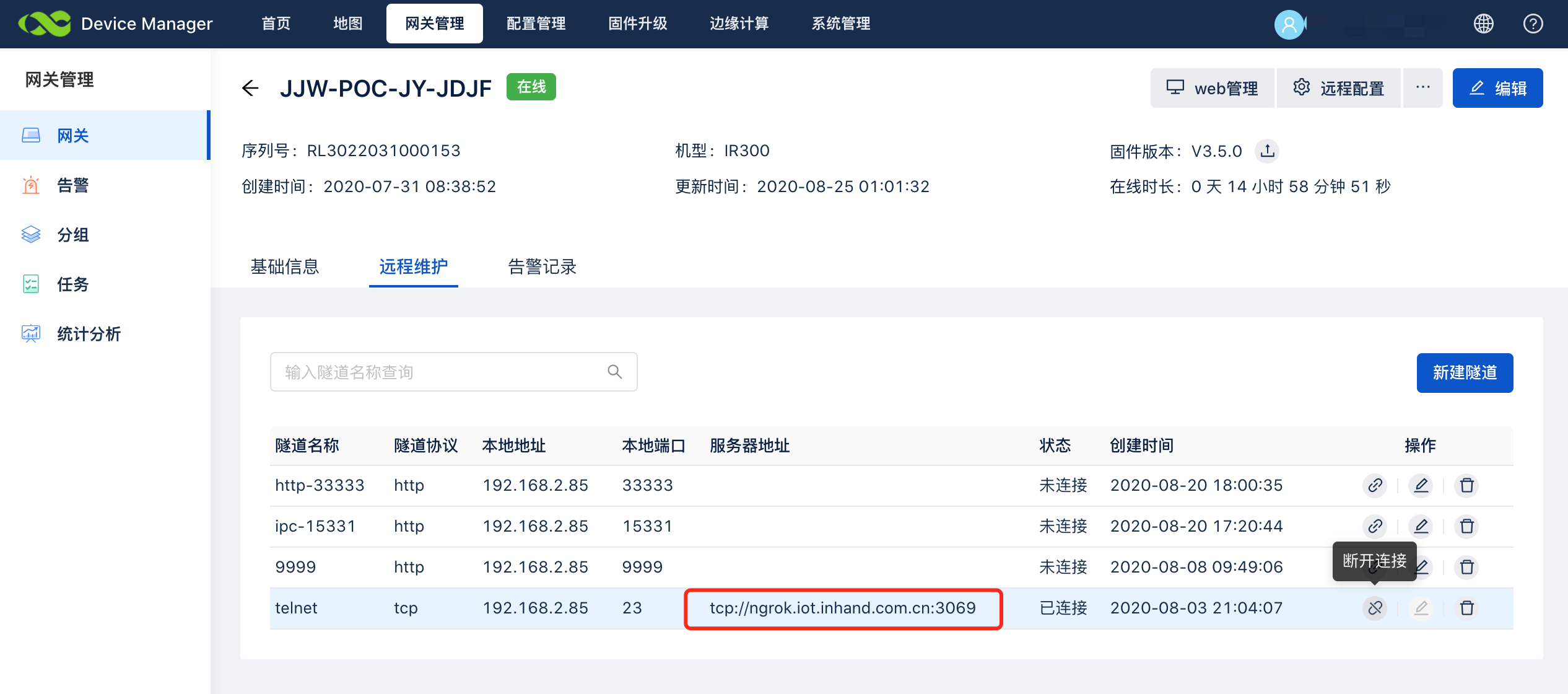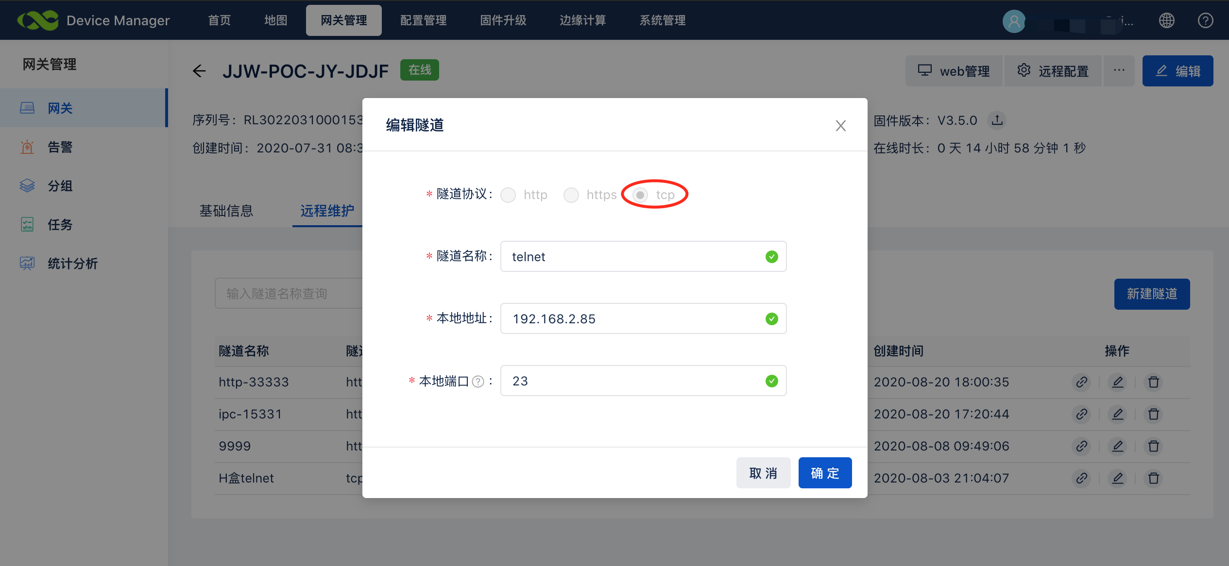 以路由器下联服务器192.168.2.85 的telent端口为例,创建隧道