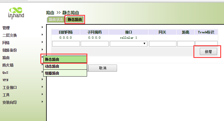 第二步:添加回程(去往Cisco LAN)路由,网络-静态路由