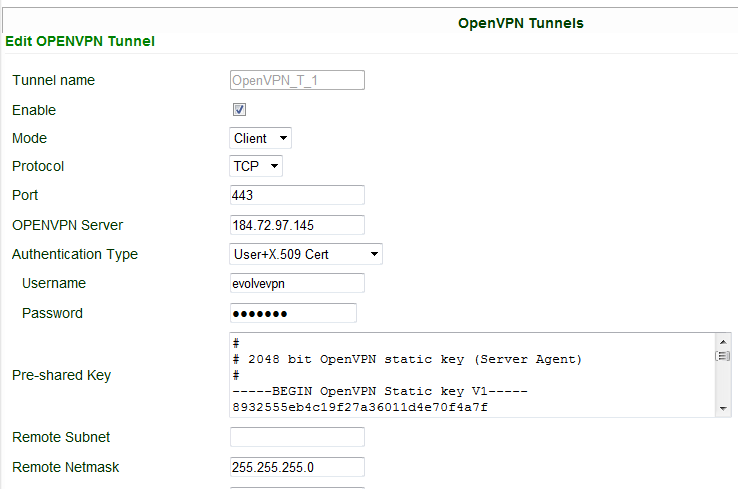 Pre-shared key: in the cert.zip you sent me, there is a file named “ta.key”, then copy it and then paste the whole text here.