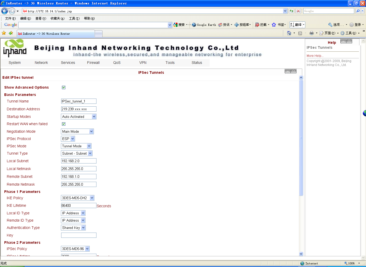 隧道名称:给您建立的ipsec 隧道设立一个名称以方便查看,缺省为IPSec_tunnel_1。