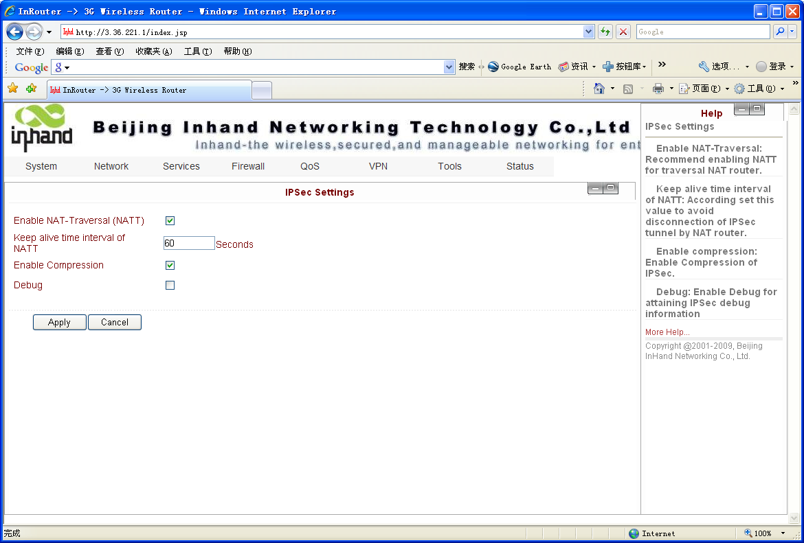 IPSec策略:可以选择3DES-MD5-96或AES-MD5-96。建议选择3DES-MD5-96。