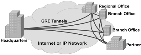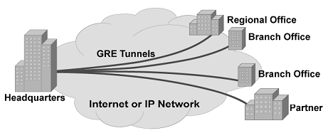 大部分协议都没有内建加密机制,所以携带他们穿越网络的很常见的方法就是使用加密(如使用IPSec)的GRE隧道,这样可以为这些协议提供安全性。(相关配置请参看GRE over IPSec)网状连接(Full-Mesh)