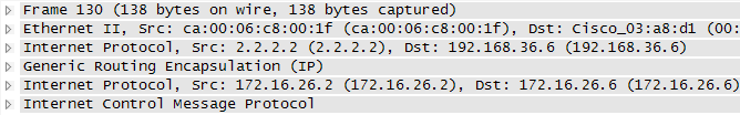 • 没有标准的控制协议来保持GRE隧道(通常使用协议和keepalive)
