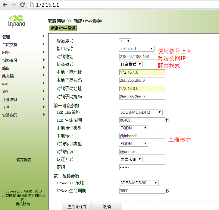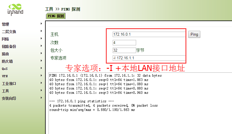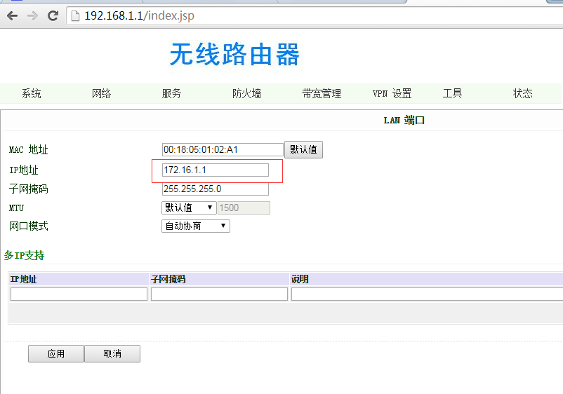 4、 无线路由器使用联通/电信3G网络无线联网,LAN 网段 172.16.1.1 /24;
