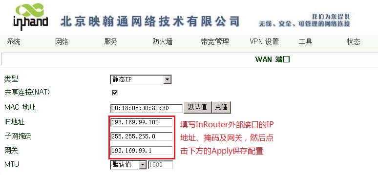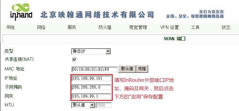 3.2.1 远端InRouter WAN口配置(如无WAN口或采用3G拨号则跳过此步骤)