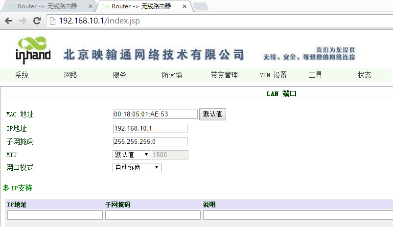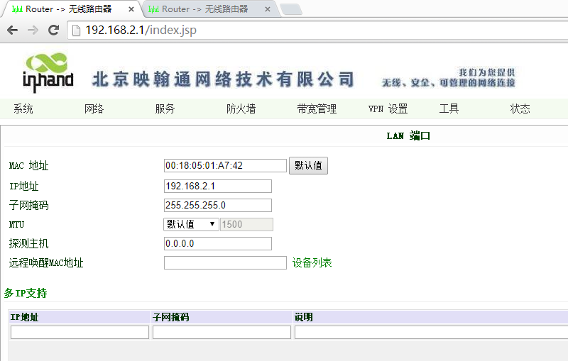 2、本机ip 借用LAN接口IP 192.168.2.1;