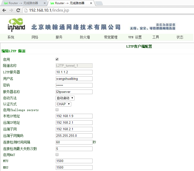 1、L2TP服务器 ,L2TP 服务器的WAN端口IP;