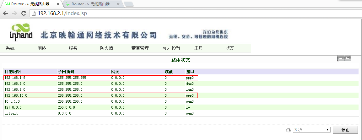 若L2TP客户端拨号成功后,在L2TP Server 路由器的路由状态中会出现L2TP客户端所获的IP地址,并且在L2TP 服务器配置中静态路由也会出现在路由条目中。