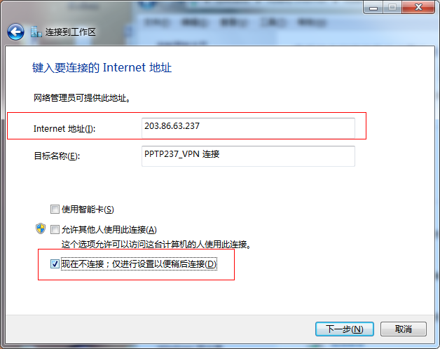 Internet 地址为PPTP或L2TP服务器的公网IP地址。