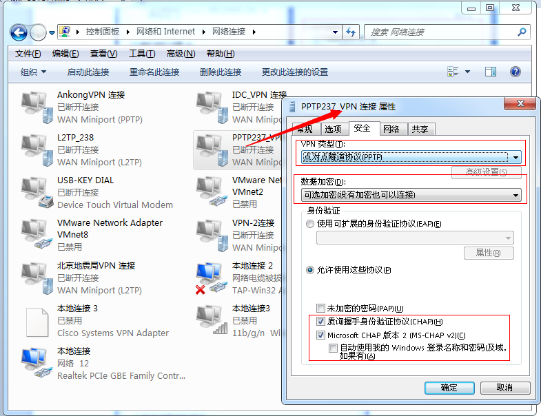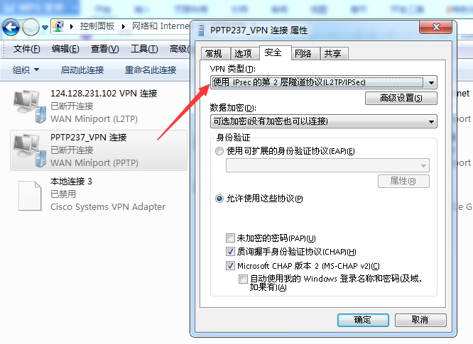 VPN类型选择PPTP,若连接方式为L2TP则改为L2TP/IPSec。