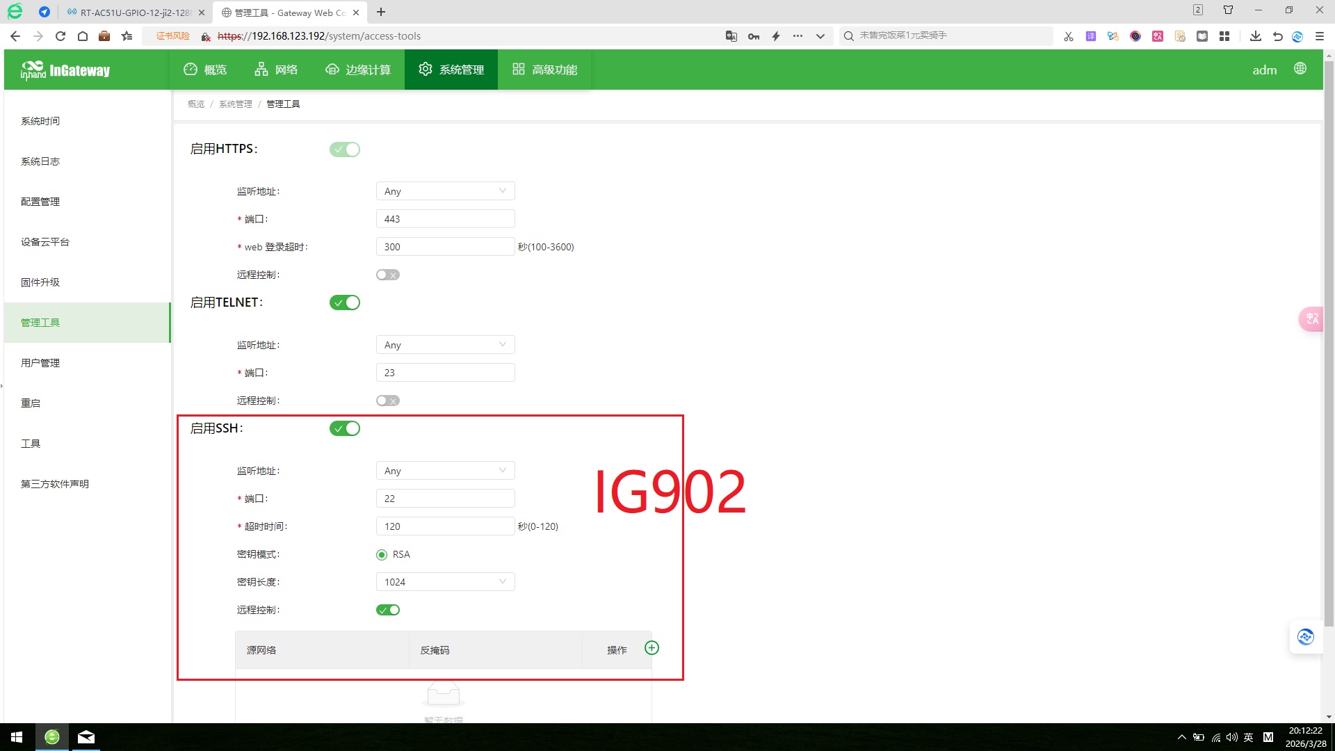 如上图:我这个IG902网关,用SSH连接,账户及密码是多少? 试过adm/123456 pyuser/序列号都试过了。都不行。