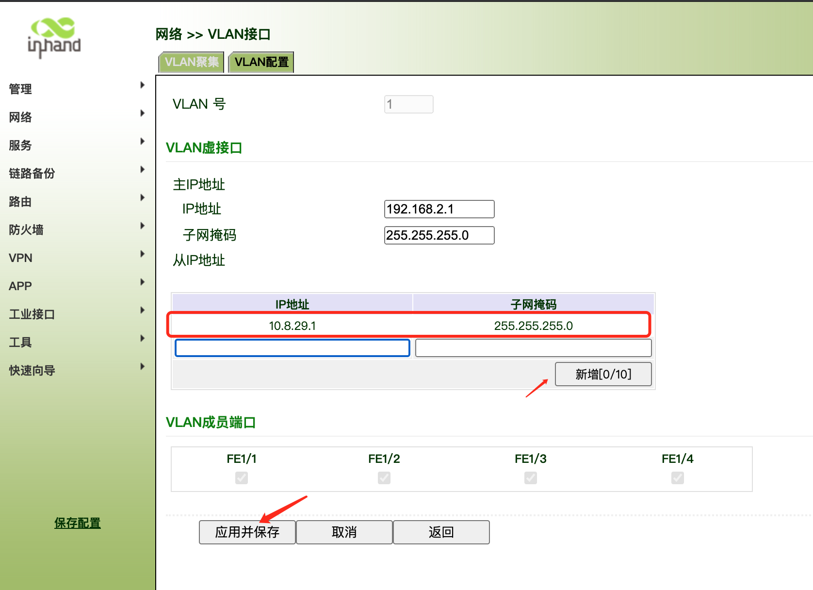 路由器LAN端口配置为该网段IP如图配置为 10.8.29.1/255.255.255.0,配置到接口多IP下或主IP下都可以。下图以多IP为例: