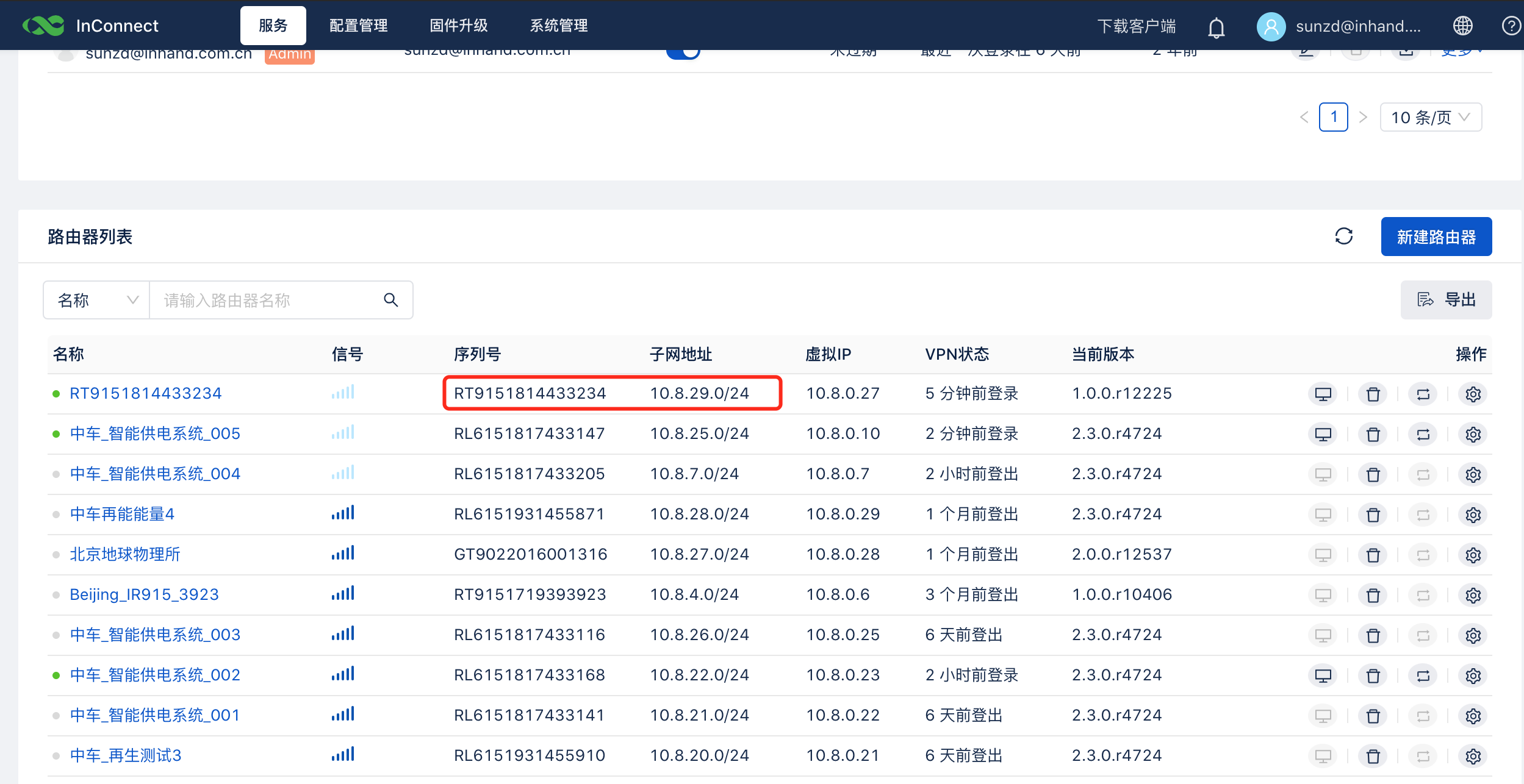 1. 使用虚拟IP映射实际IP解决了,不同现场的 IP设备 的IP地址 ; 2. 是否可以使用实际IP进行连接呢? 是可以的,但路由器LAN端口需要配置平台给该路由分配的IP地址段: 如下图路由器 RT9151814433234 平台为该路由器分配的网段是 10.8.29.0/24