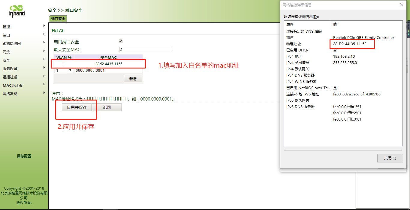 写入接口允许放行的mac地址即白名单,应用并保存即可